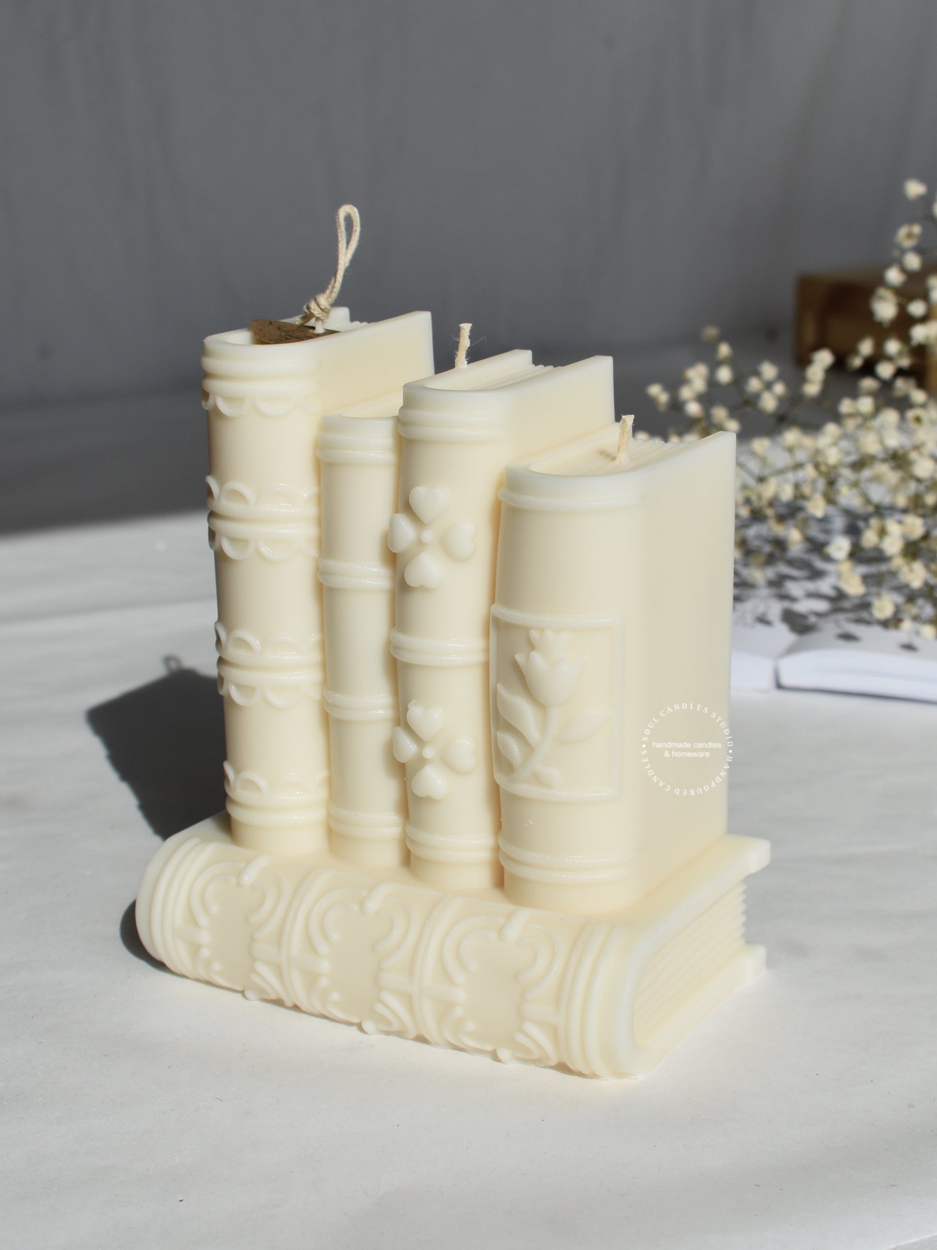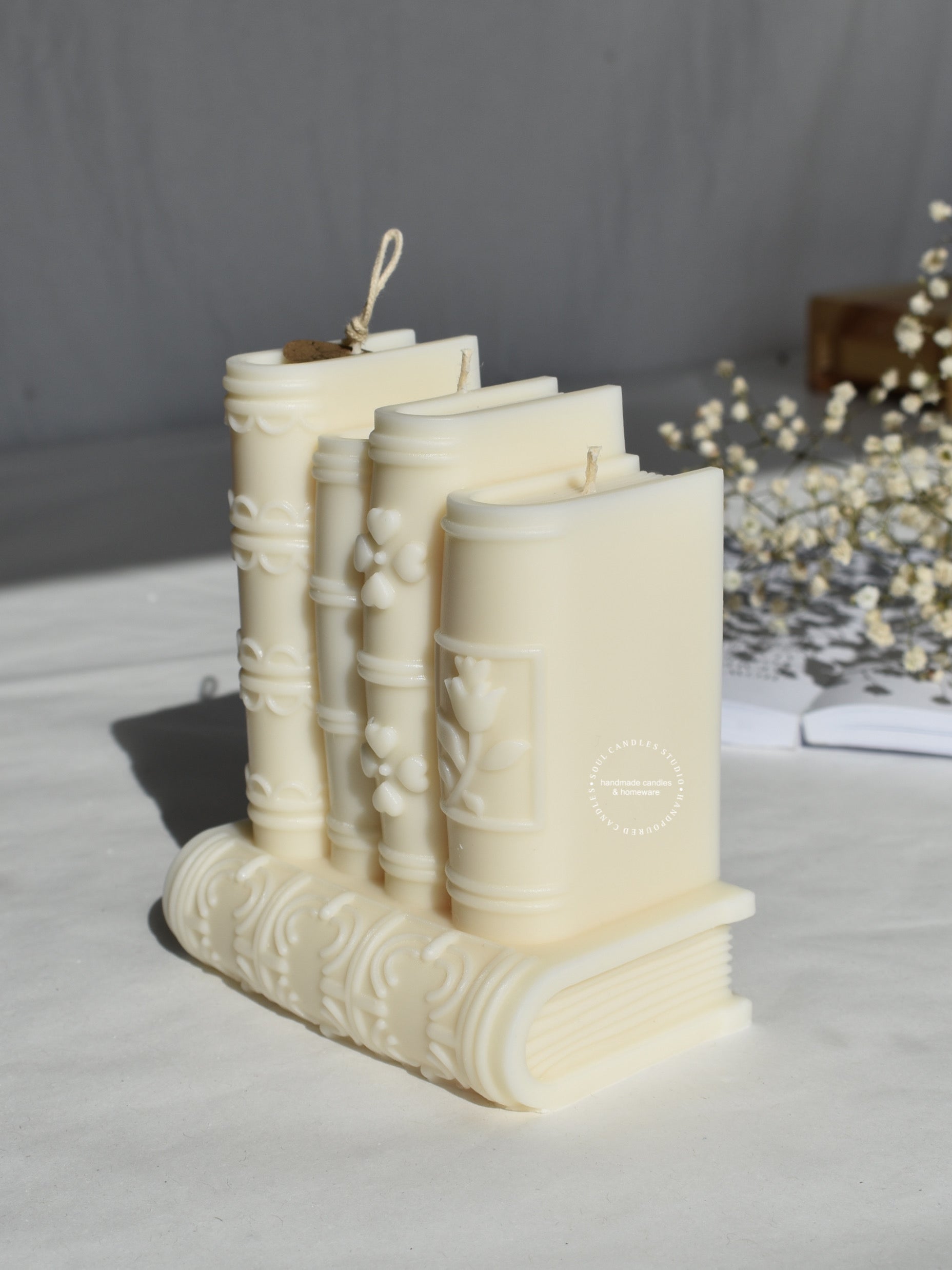 Ein Highlight für alle Buchliebhaber. Die Bücherkerze verwandelt jeden Raum in einen gemütlichen Ort, der zum verweilen einlädt. Sie wird mit viel Sorgfalt handgegossen und besteht aus hochwertigem Rapswachs, wodurch wir immer eine anhaltende Qualität gewährleisten können.