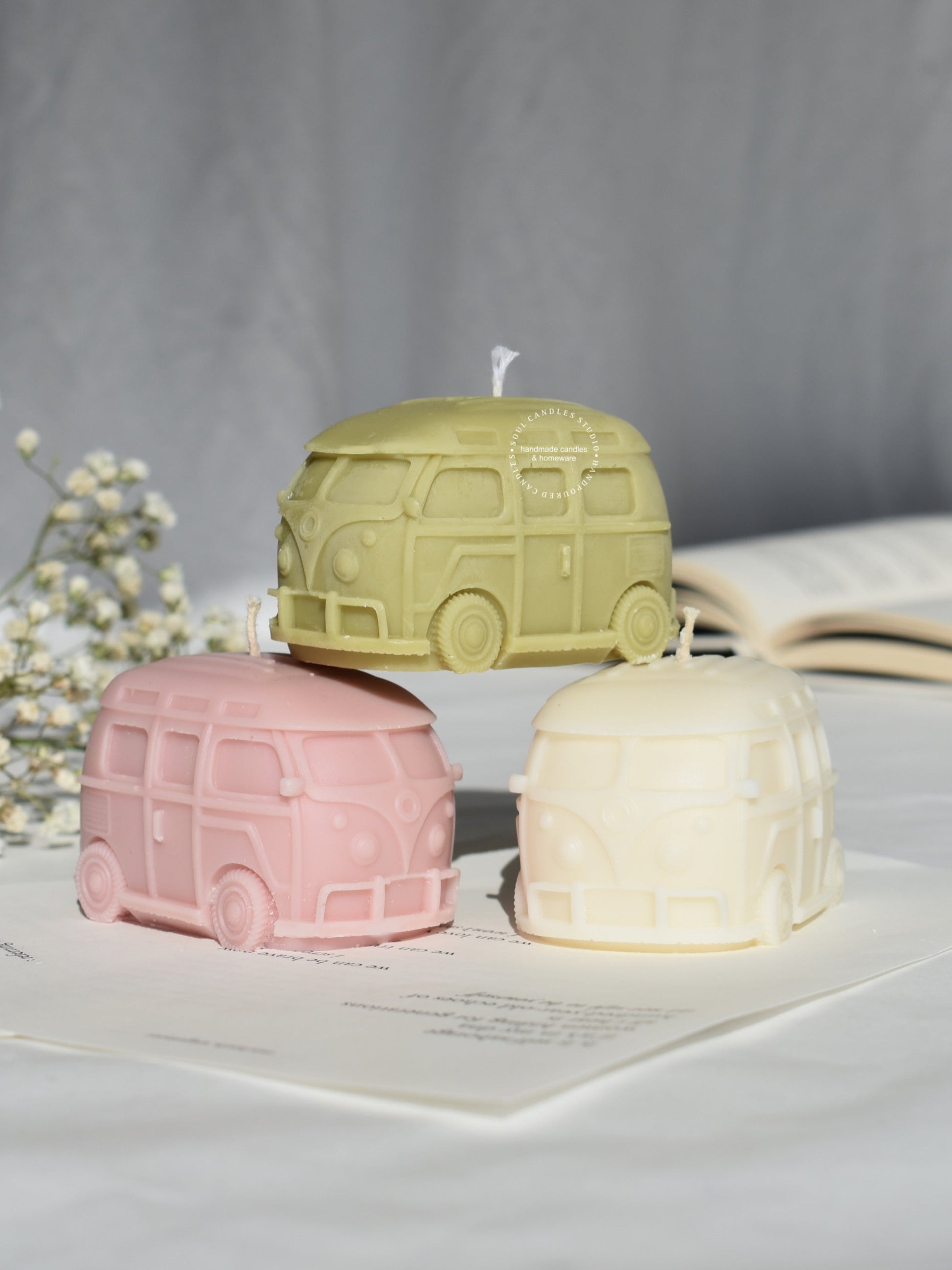 Unsere Camping-Bus Kerze, das Highlight für alle Campingfans. Erhältlich in 3 schönen Farben.