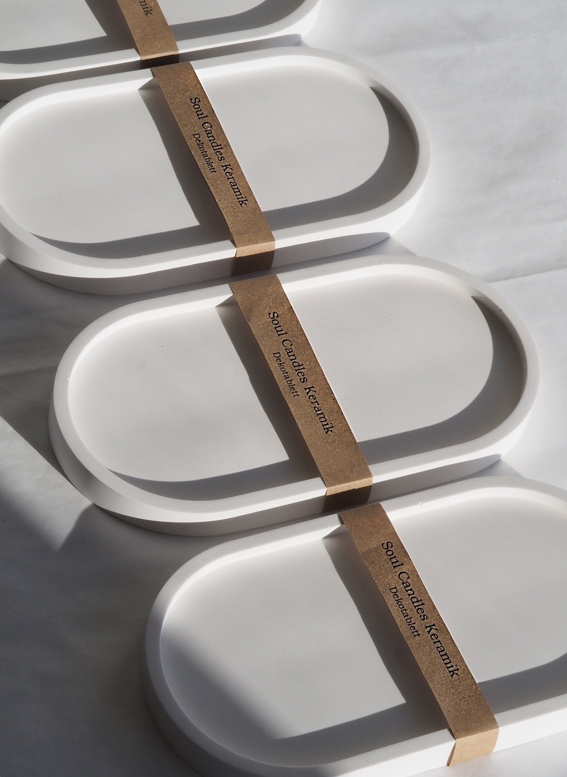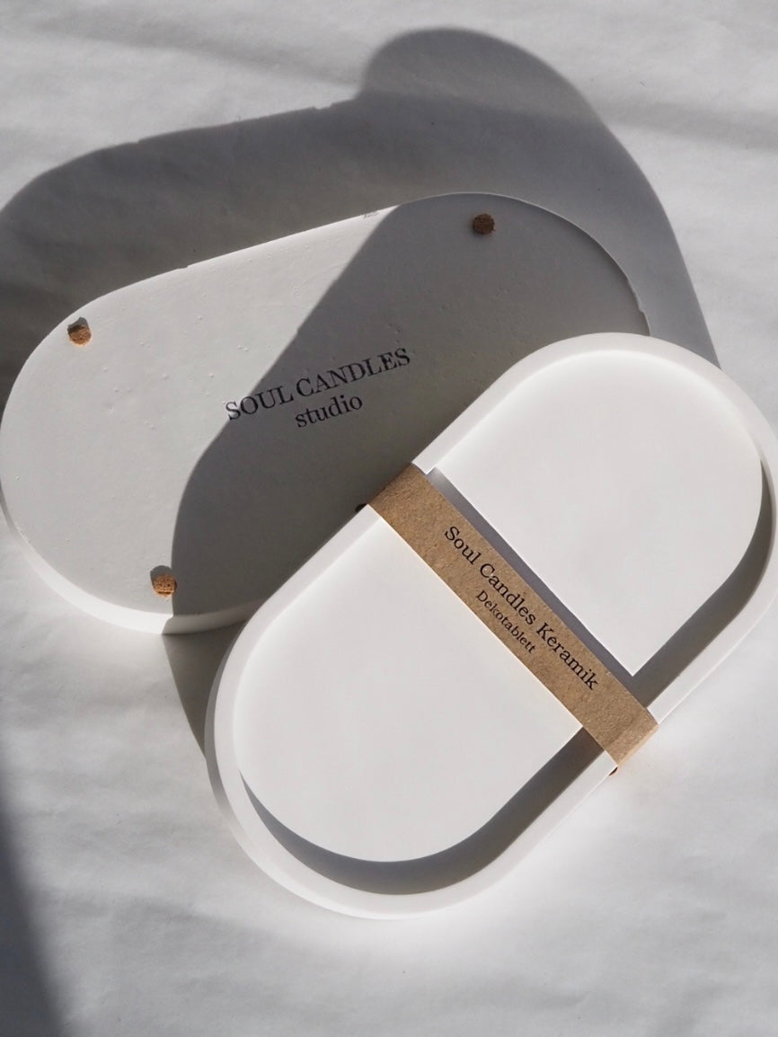 Unser ovales Dekotablett ist durch sein schlichtes Design vielseitig nutzbar. Es wurde mit viel Sorgfalt handgegossen und besteht aus umweltfreundlicher Gießkeramik