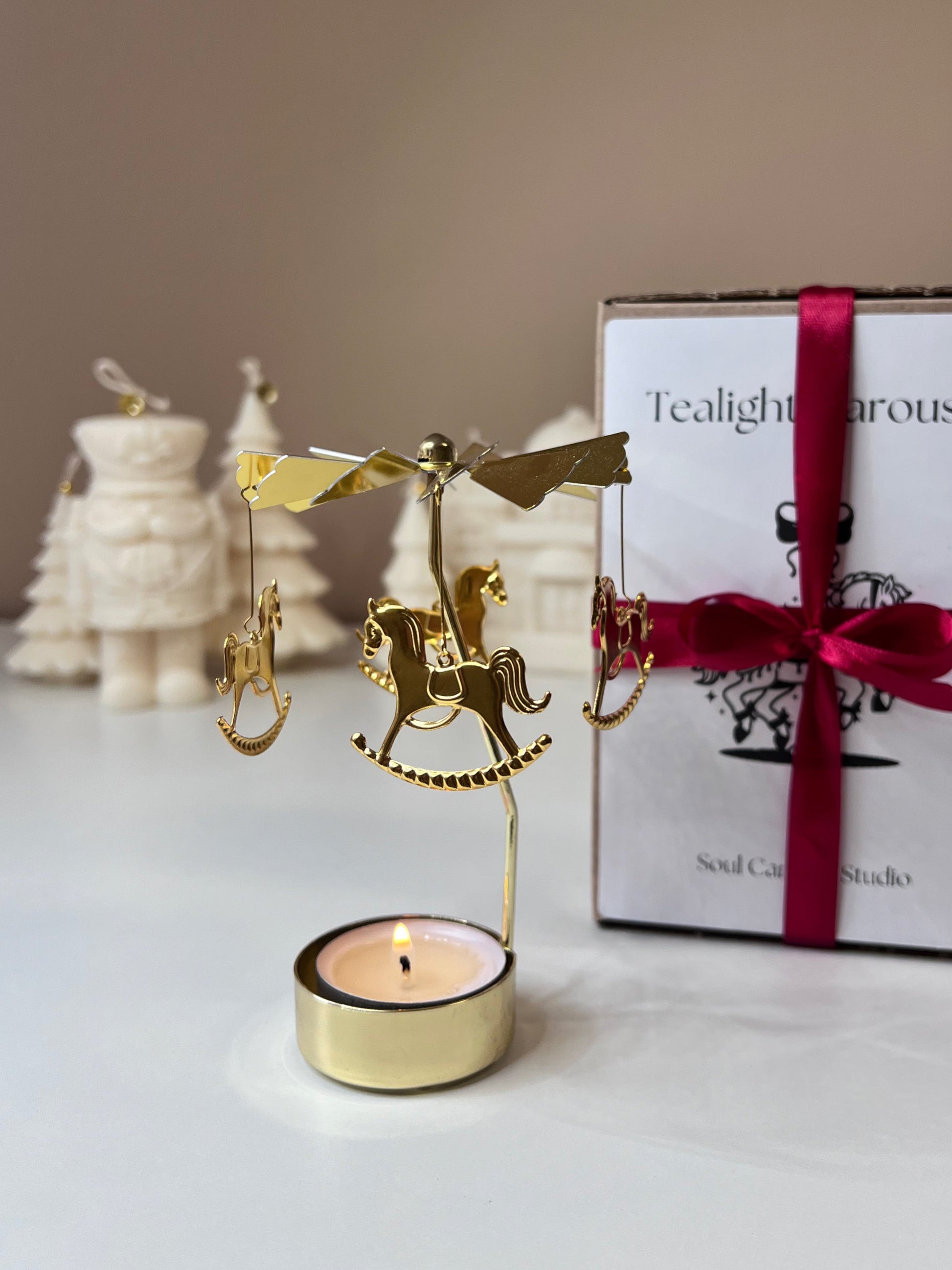 Das Teelicht Karusell ist die perfekte Ergänzung zur Weihnachtsdekoration. Man möchte den Blick nicht mehr abwenden und am liebsten stundenlang zuschauen, wie sich das Karusell harmonisch dreht.