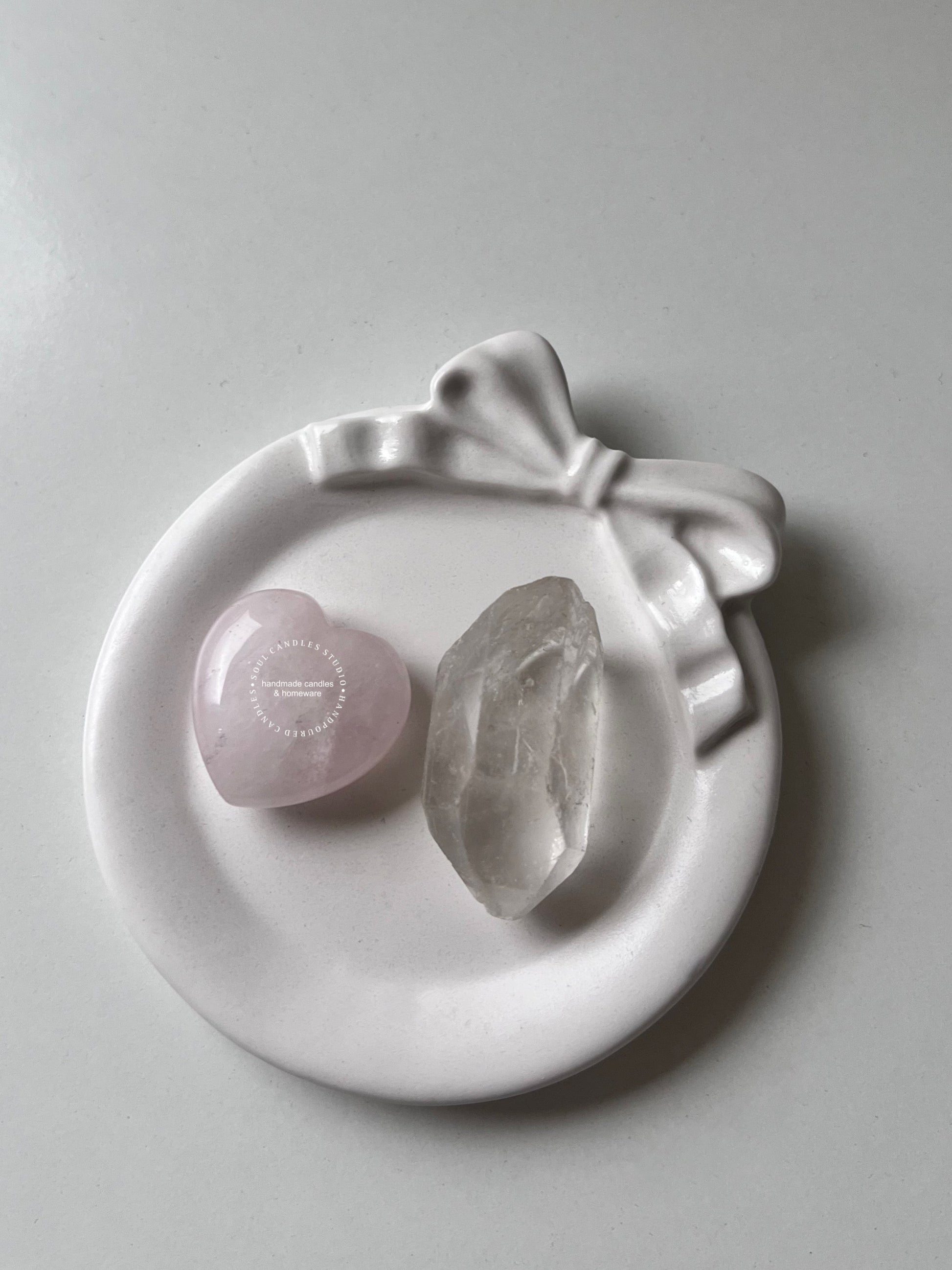 Das Vintage Bow Tray ist ein stilvolles und nostalgisches Accessoire, das perfekt als Schmuckablage oder für deine Lieblingskristalle geeignet ist. Mit seinem eleganten Design und den feinen Details fügt es sich harmonisch in jede Einrichtung und setzt deine Schätze gekonnt in Szene. Ob auf dem Nachttisch, dem Schminktisch oder im Wohnzimmer – dieses Tablett verleiht jedem Raum einen Hauch von zeitloser Schönheit.